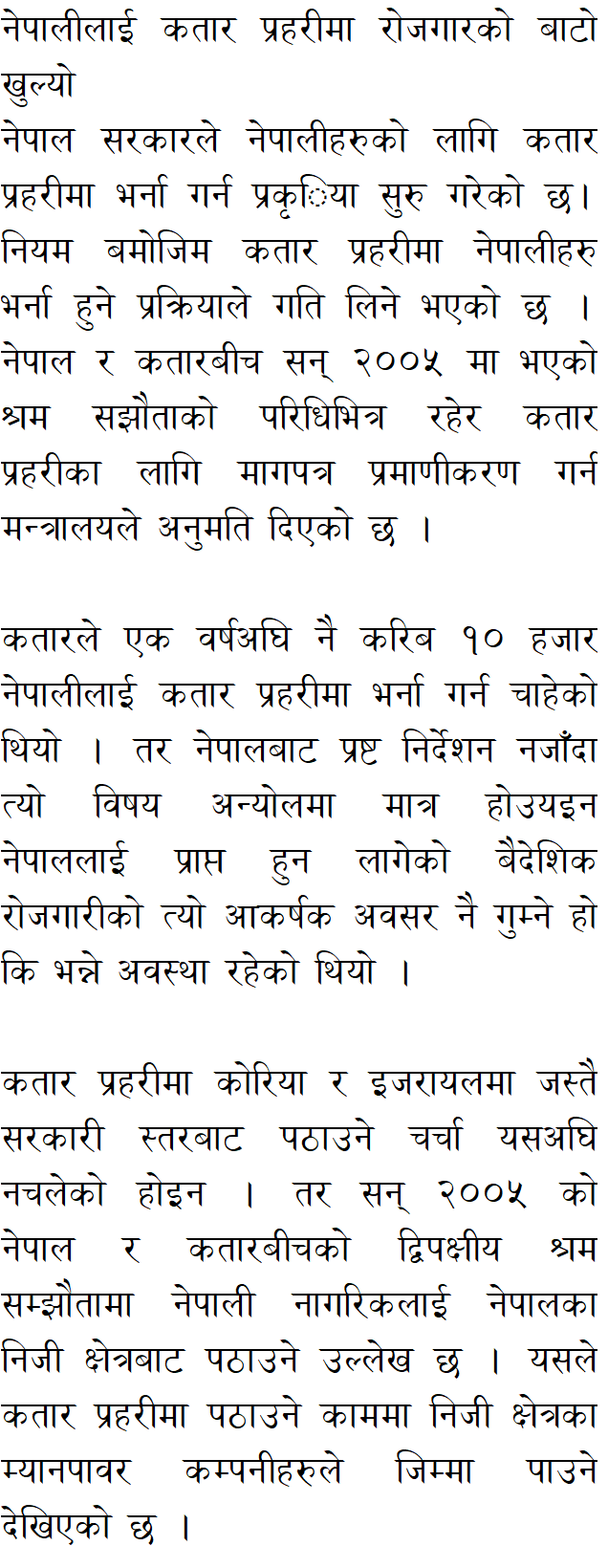 A year ago, Qatar wanted to recruit about 10,000 Nepalis into the Qatari police. But due to the lack of clear instructions from Nepal, the issue was not only confused but also the attractive opportunity of foreign employment that Nepal was about to get.