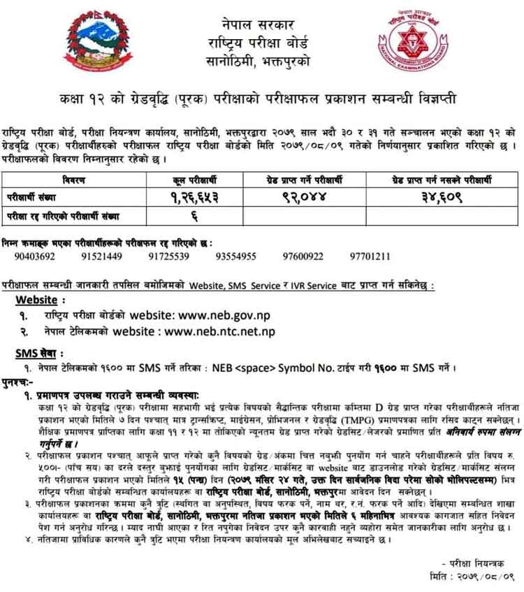 Check Class 12 Grade Briddhi Results Purak Result Grade Briddhi 12 NEB Result 2022